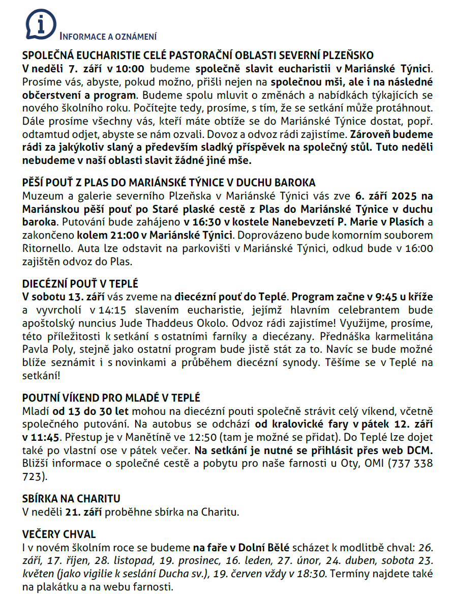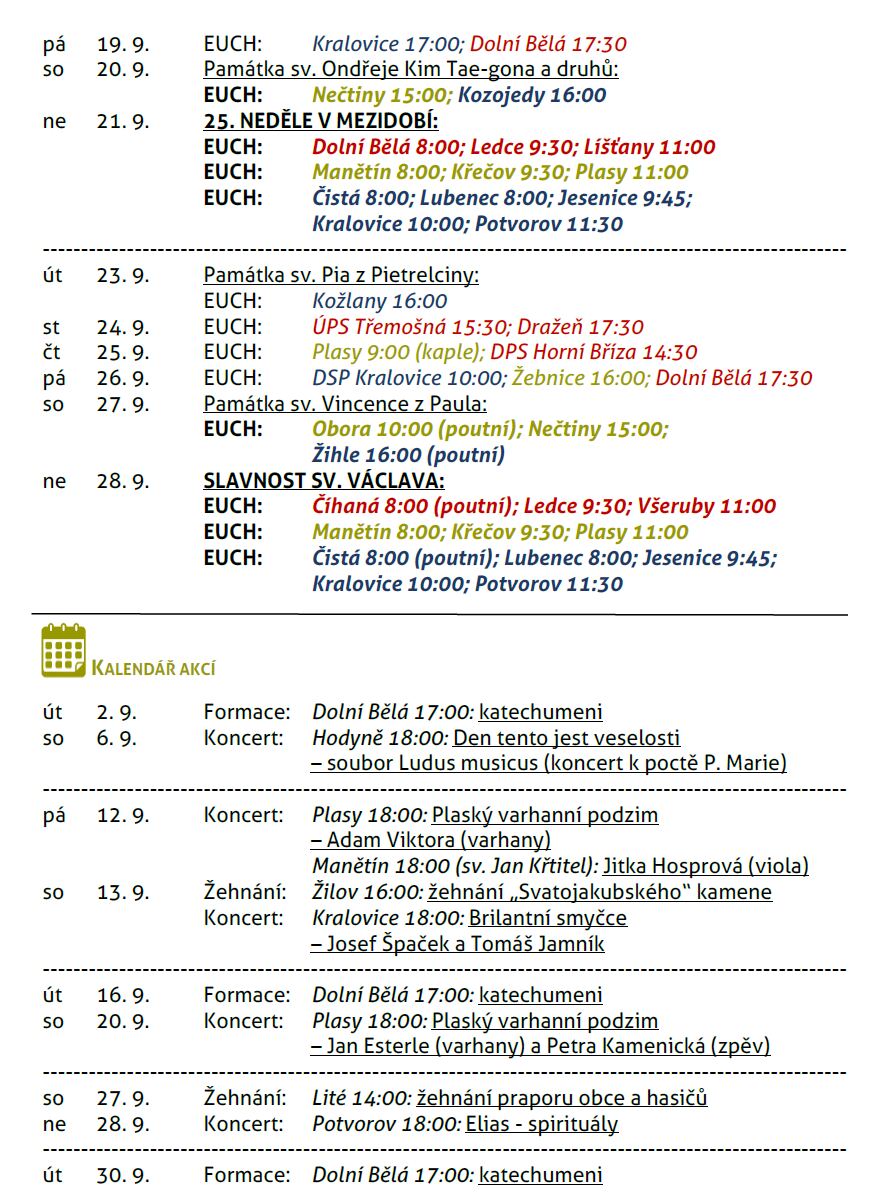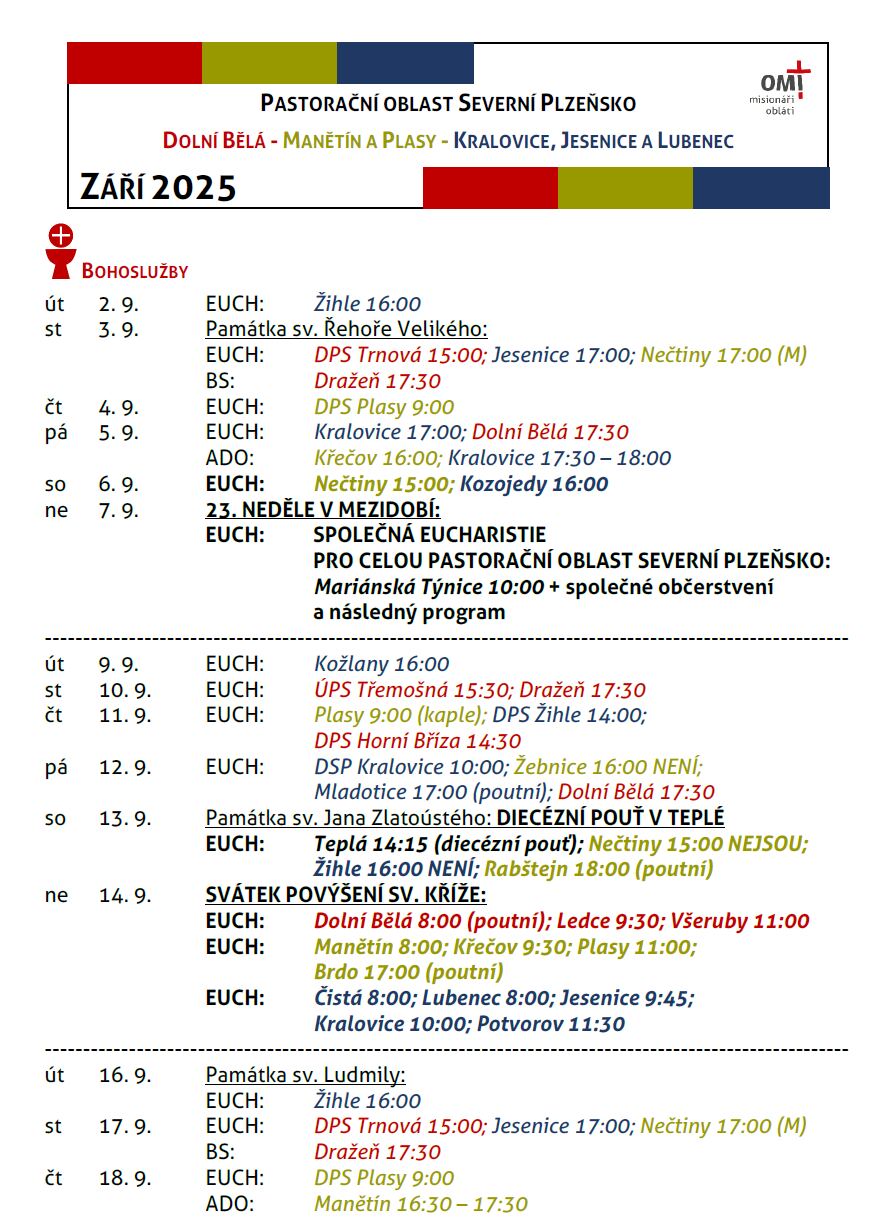 Rozpis bohoslužeb a akcí na září 2025