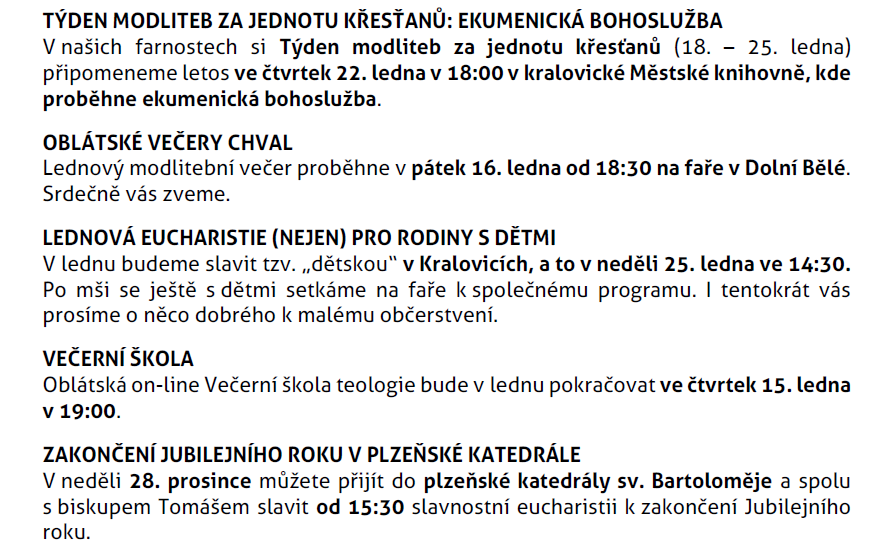 Rozpis bohoslužeb a akcí na leden 2026